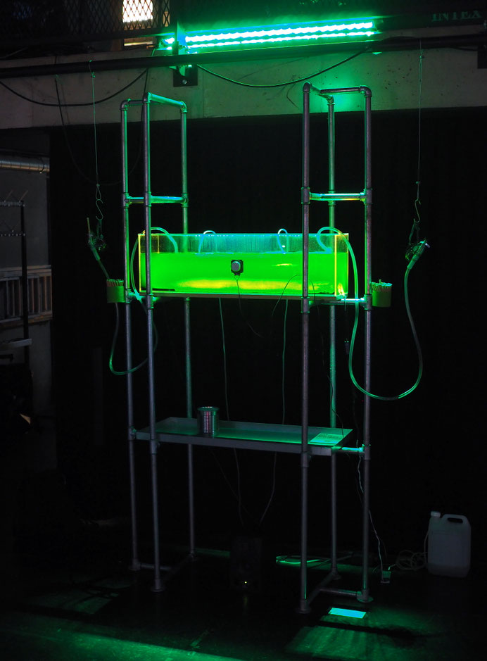 Visitor blowing out CO2 in the algae tank, effecting the sound of photosynthesis.